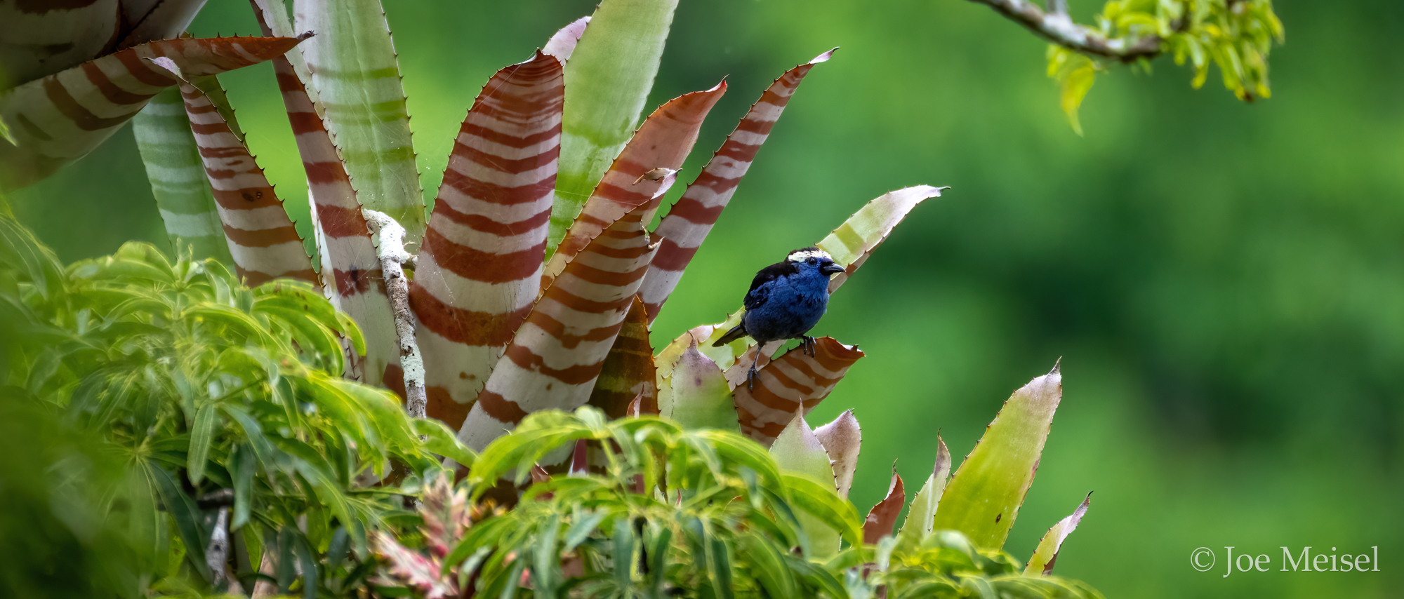 Opal-crowned Tanager, nesting in a canopy bromeliad: