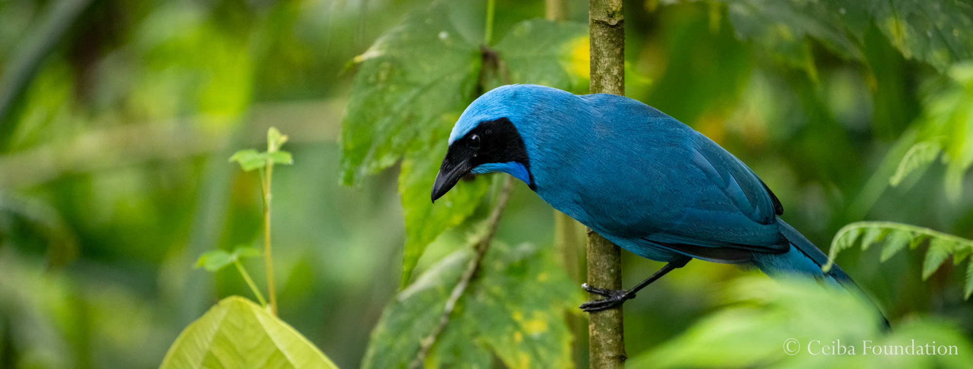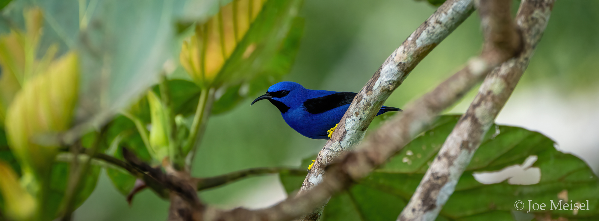 Purple Honeycreeper, a sharp-billed relative of the tanagers, high in the canopy: