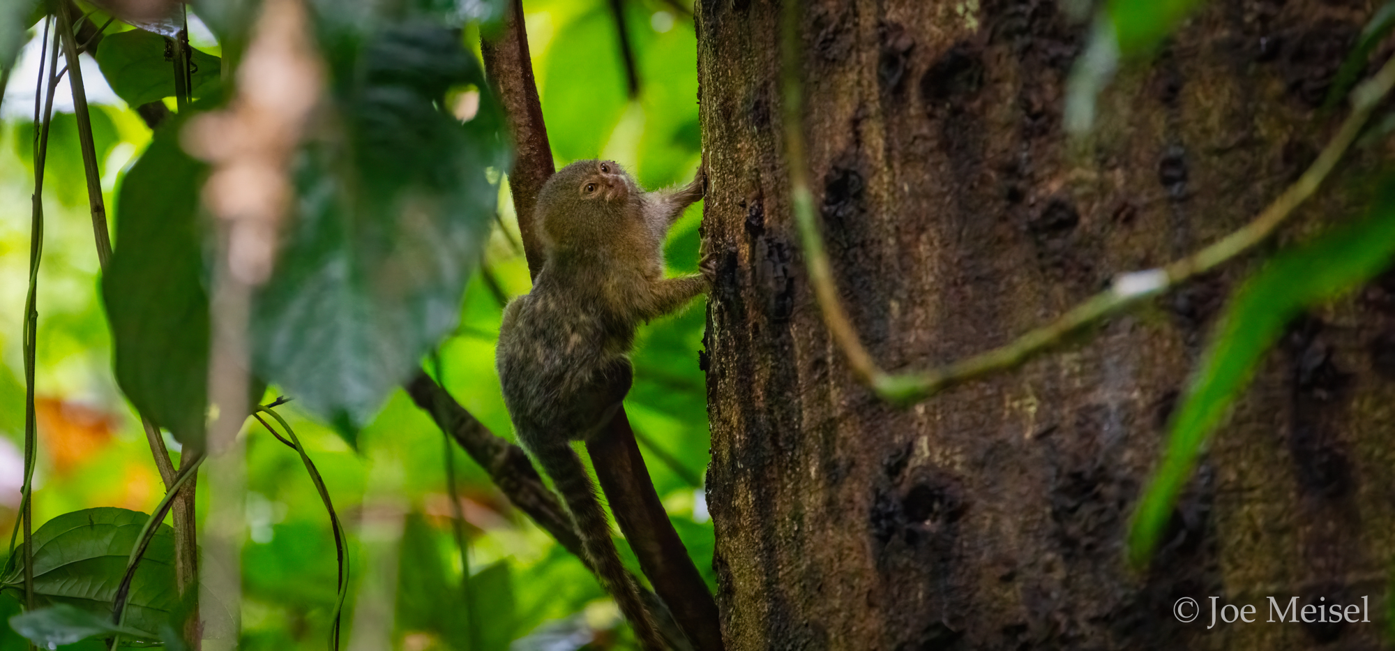 Pygmy Marmoset, the smallest primate in the Western hemisphere, making sap-drinking holes in a Parkia tree: