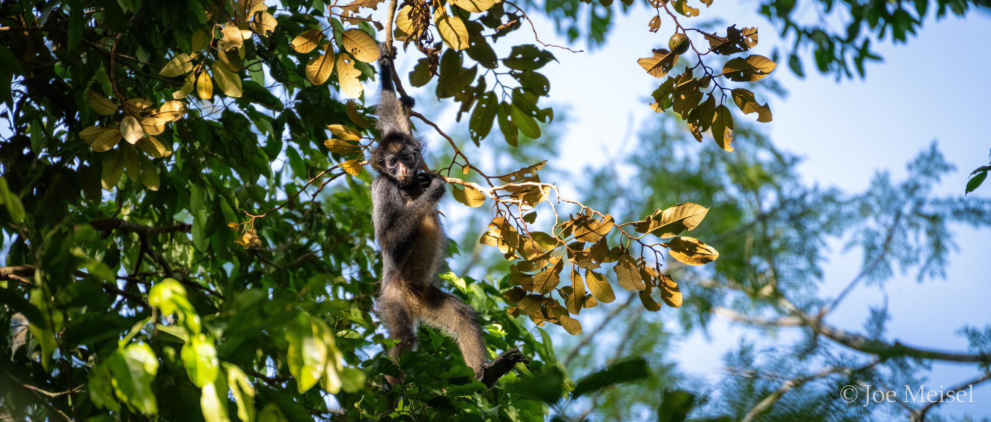 Spider Monkeys travel huge distances, and feed constantly on ripe fruits, but they take time out -- especially juveniles like this one -- to hang around and play: